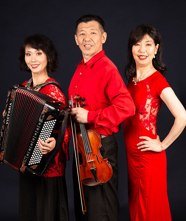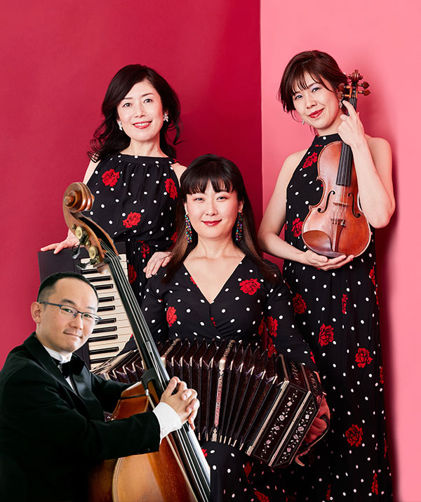 バンドネオン 福岡県宗像市出身。福岡女学院高等学校音楽科、東京音楽大学ピアノ専攻卒業。第一回チェ・バンドネオン世界大会優勝(2015年アメリカ)。渡辺えりと出会い、舞台「りぼん」に出演。以来、ジャンルや文化の壁を越え(西城秀樹、沢田研二、笑福亭鶴瓶らと共演)幅広く活動、海外フェスティバルやTango Buenos Aires Festival y Mundial(2024)にも出演。また、この稀有な楽器の認知度を高めようと地元福岡で「バンドネオン知っとう隊」を結成し、「じゃばら体操」や「折り紙でバンドネオン」などで、普及活動にも力を入れる。「エアーバンドネオン大会」主催者。