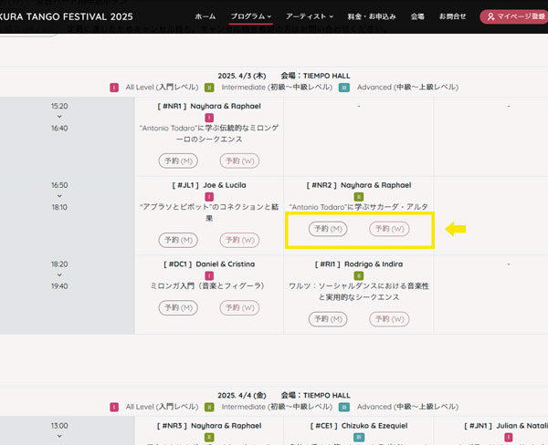 ※ WELCOME & GRAND MILONGA 各日券、WS個別申し込み